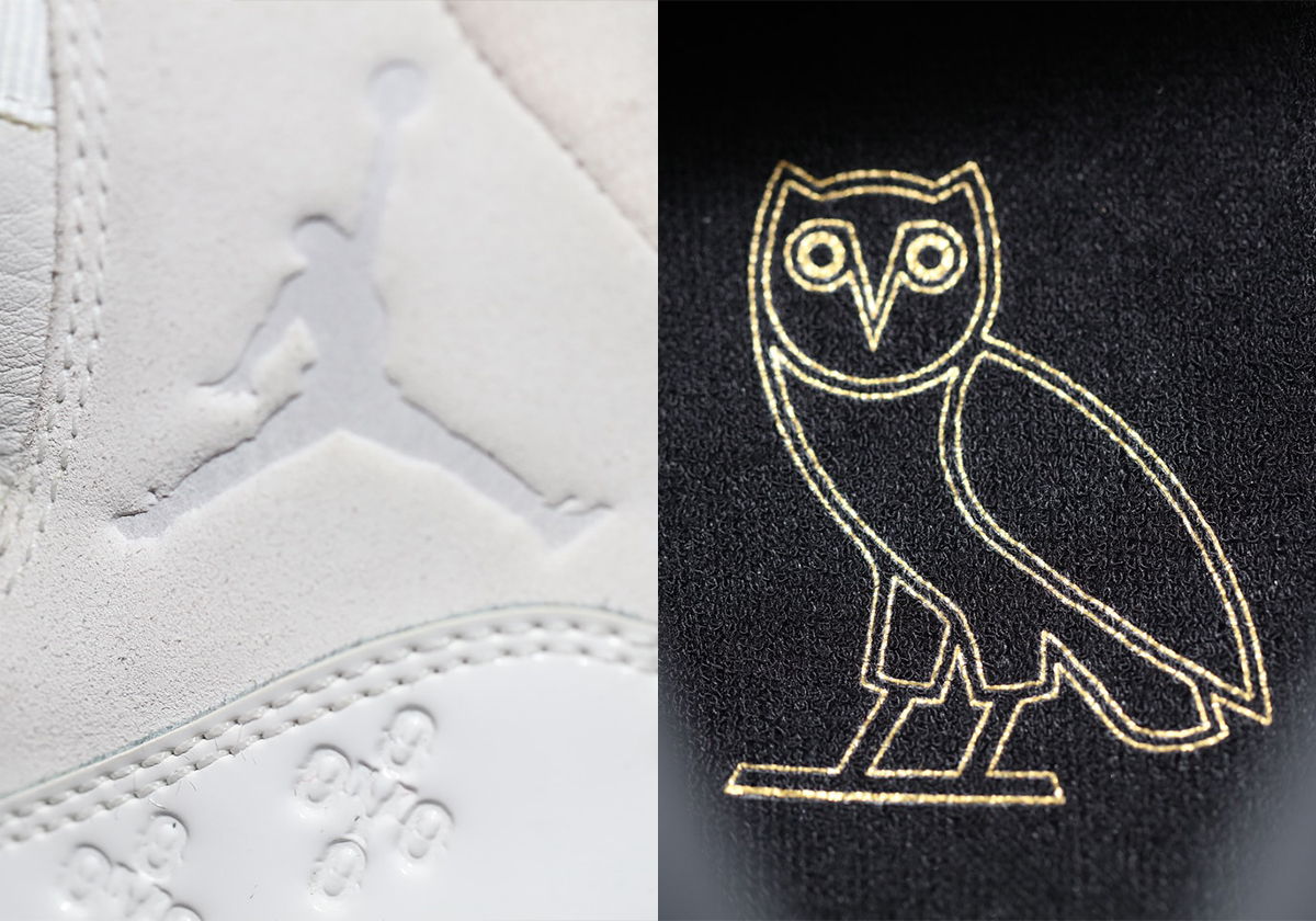 As mentioned, in the broadest strokes these align with the design language we saw on the Air Jordan 8, Air Jordan 10, and Air Jordan 12 two-packs that landed in the mid 2010s, seen with the opposing white and black palettes and the use of glittery golden outsoles. It further joins the Air Jordan 9 “OVO” samples that touched down earlier in 2025, credibly providing clarity as to what the Toronto rapper and Nike, Inc. would’ve had in the chamber had their relationship continued. Most notably, the patent leather on either of these shoes bear embossed cross patterns of the OVO acronym, potentially a way to maintain the same luxury atmosphere that they achieved with stingray leather on previous Retros, shifted given the material differences the Air Jordan 11 presents.