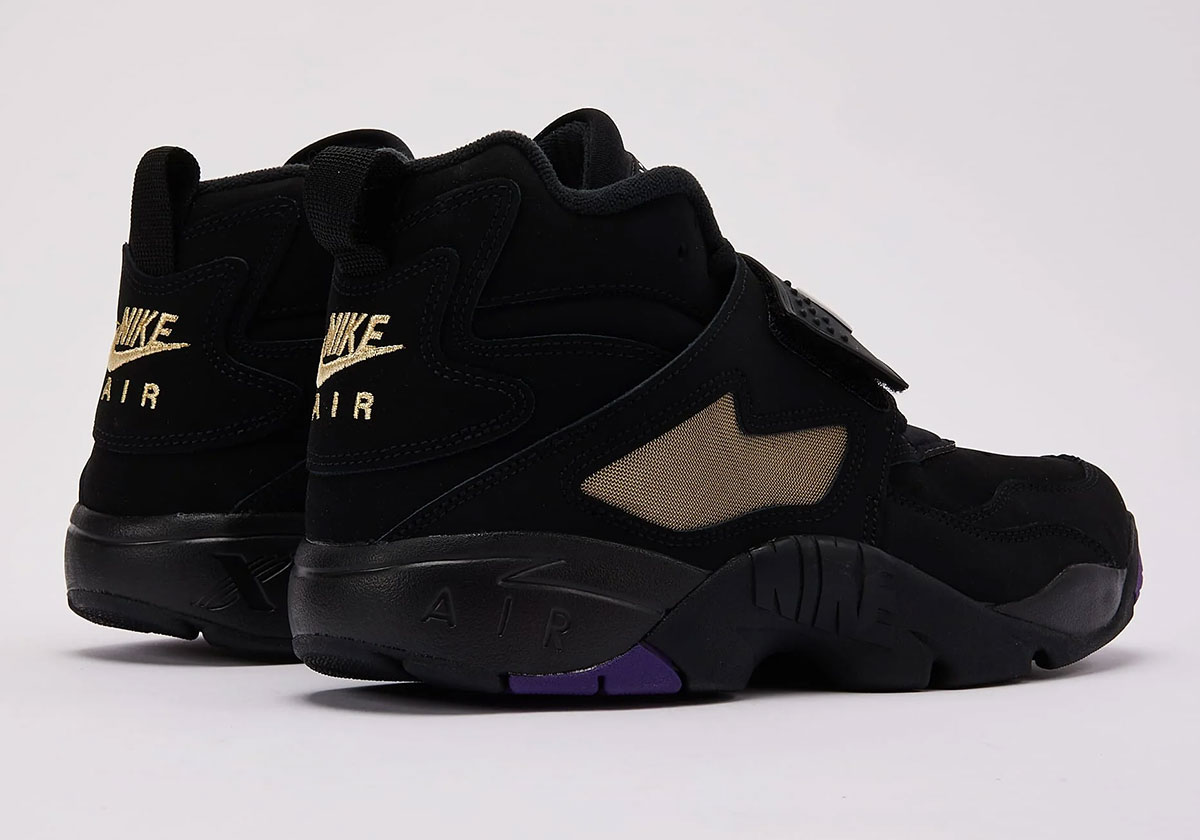 Set to launch on May 30th, 2025 for $150, the Air Diamond Turf “Ravens” emerges via Nike official images weeks ahead of the release. It features a black nubuck upper with the Ravens purple hitting the interior and golden accents appearing on the metal mesh on the mid-foot strap and the Nike Air branding on heel. White Swoosh logos are proudly displayed on the thick mid-foot strap, while the original logos featuring the uprights as well as the Diamond Turf logo appears on the tongue.