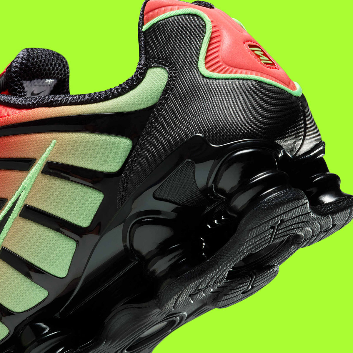 You don’t need any botanical knowledge to instantly read the red/green ombre as a connection to the Capsicum family, already visited on several previous occasions this decade. Bracketed on all sides by black synthetics, the two hi-vis hues are centralized on the gradient mesh that centers this design, additionally popping on the heel cup and surrounding piping, as well as with a vibrant interior insert. While this is a particularly notable application of the theme, such gradient looks have been a growing aesthetic on the model, creatively applied on both the foundation of previous pairs and their TPU overlays.