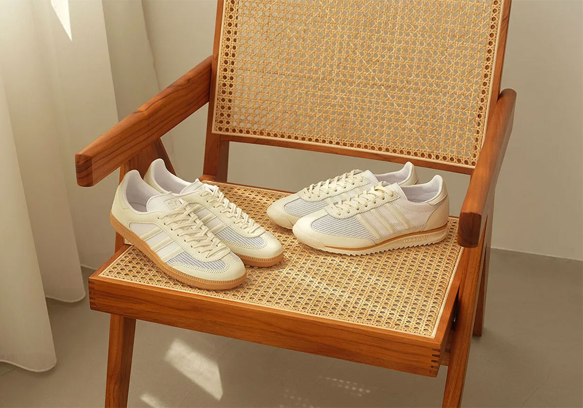 For simplicity’s sake, both follow the same design formula. A white leather panel sets the stage on the quarter, giving way to mesh following the foremost stripe. The outermost layer, including the stripes, backtab, and t-toe overlays, blend in delicately with cream-colored leather. The Samba sticks to tradition with a brown gum sole, while the SL 72 features a slim brown streak across the top portion underfoot.