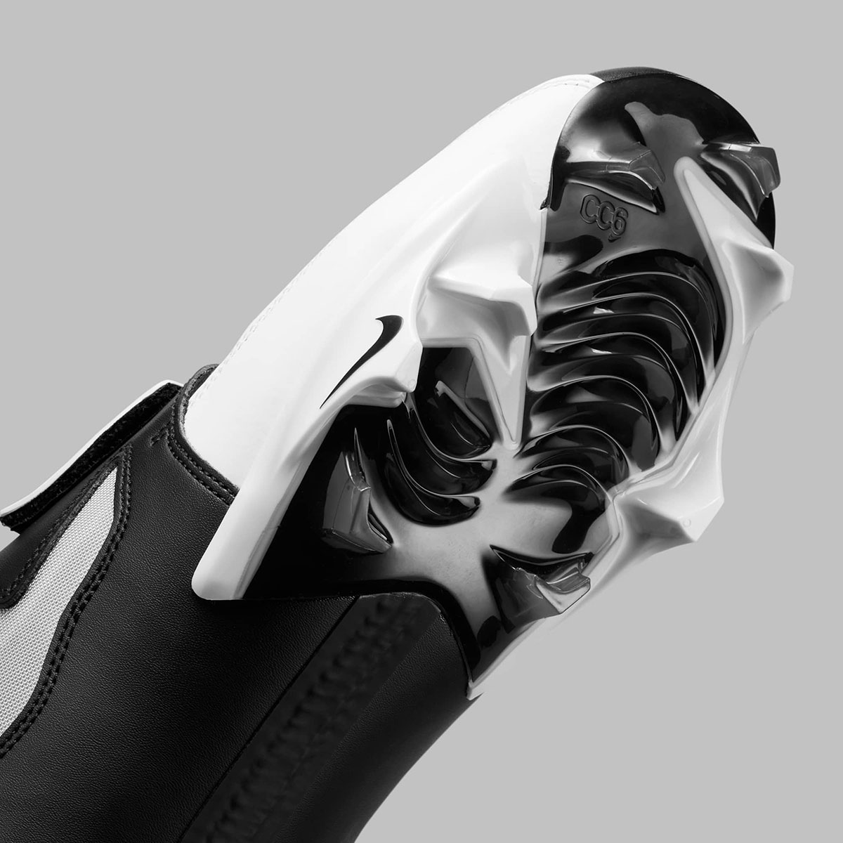 The second of two Diamond Turf 93 cleats behind the “Falcons” colorway from January, versatility is the name of the game here. Aligning with just about any uniform, black and white leather placements are utilized throughout. All-caps “PRIME” branding returns to the tongue tag, while Swoosh logos appear on the lace strap and twice on the football spikes.