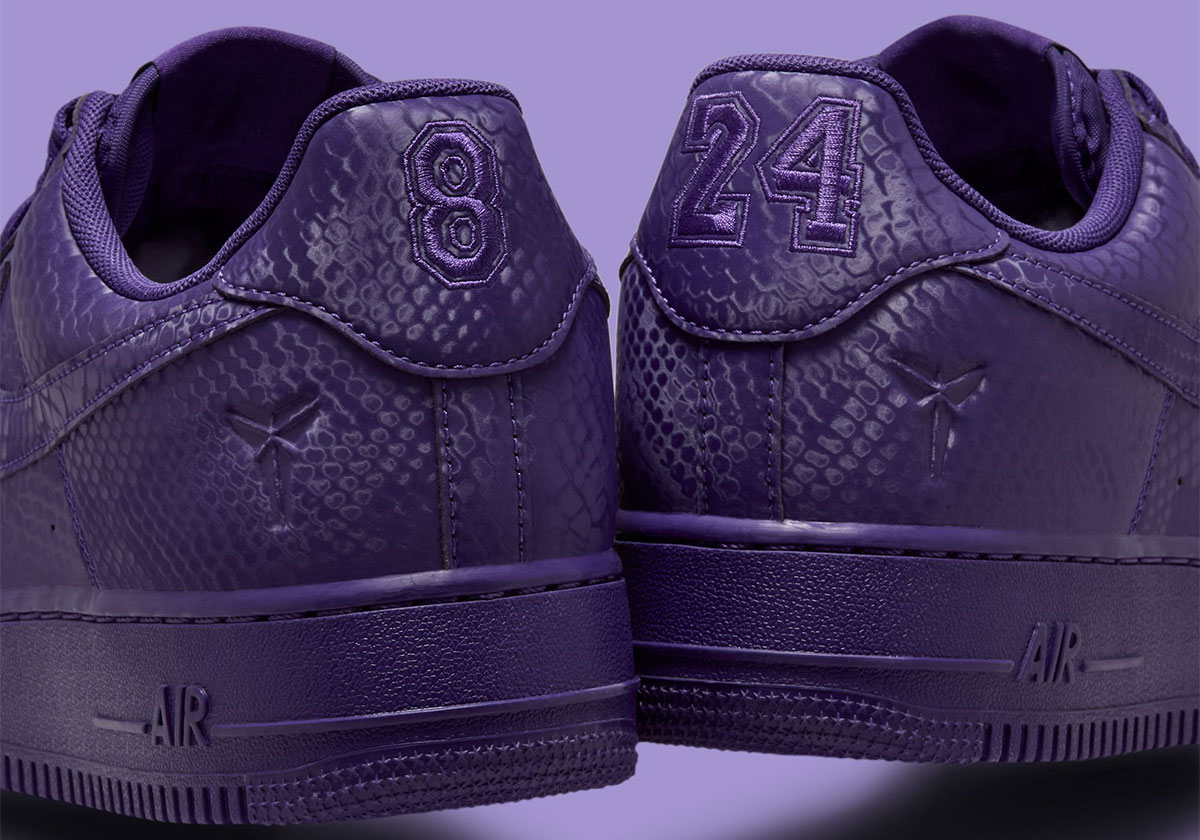 Updated June 12th, 2025: More images of the Kobe Bryant x Nike Air Force 1 “Court Purple” aka “Forever Purple” have been uploaded. Here we get a full look at the backtabs, with the left reading “8” and right reading “24” for Kobe’s two jersey numbers. No release date has been confirmed at the time of this update, but it’s suspected the sneaker could drop on Mamba Day 2025 (August 24th). Stay tuned for additional info and keep scrolling to read our initial coverage.