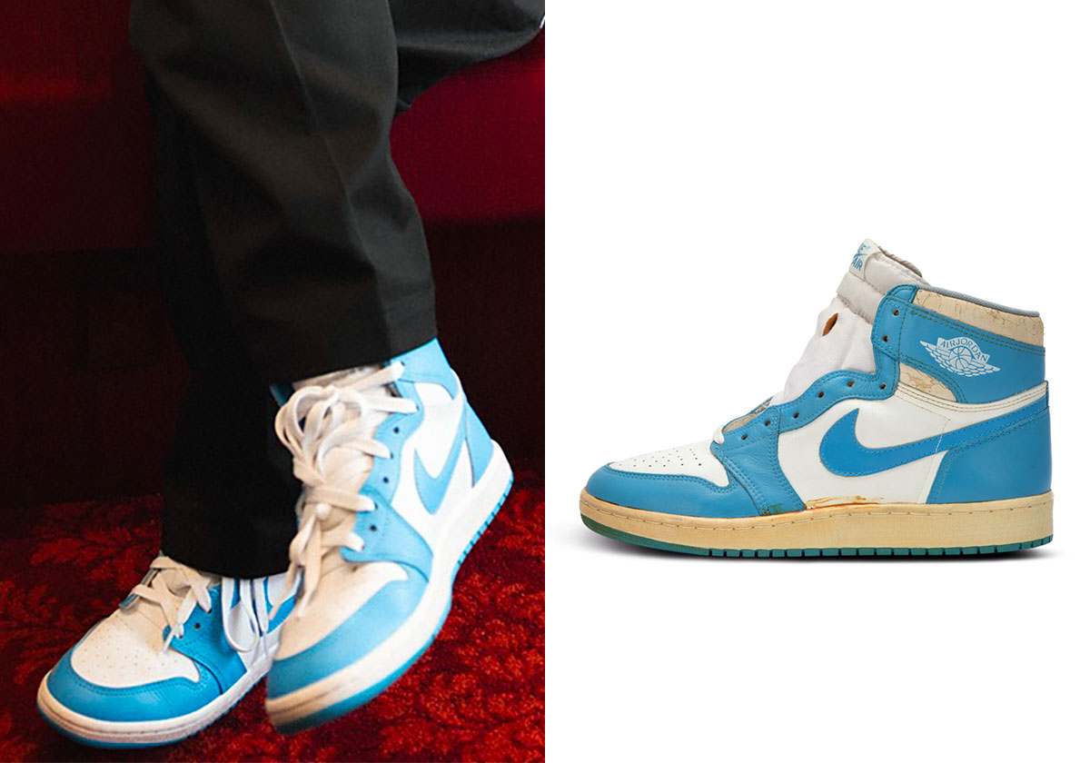 his Air Jordan 1 features the original white and dark powder blue color combination that was created as a nod to Jordan’s time in North Carolina. That collegiate tenure remains a pivotal storytelling beacon for the Jumpman, with creative concepts like the Air Jordan 3 “Lucky Shorts” and the recently dropped “UNC Reimagined”.