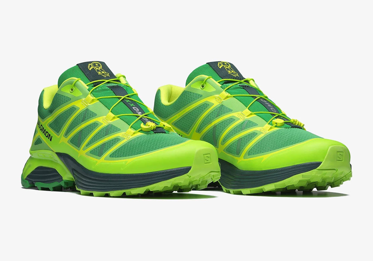 Three different shades land on the Feid x XT-Pathway, with a dark midsole, bright overlays, and lime-colored base comprising a true eye-catcher. Text for the sneaker’s “FXXOMOR” nickname runs along the tongue, bordered by another tag featuring a custom cartoon graphic.