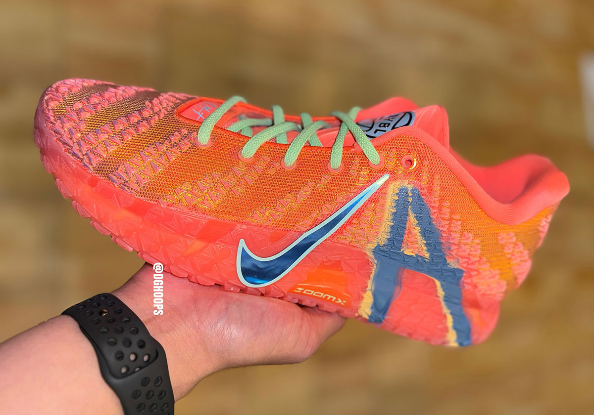 Of course, as one of Nike Basketball’s buzziest new faces, the Ja 3 gets top billing in this group, utilizing the signature orange shade in spades throughout its profile, bracketing it with neon green laces and blue branding hits, including on the Swoosh/”JA” hits on the lateral side. As it typically does, that “Peach Jam” coloring makes repeat appearances on what attendees laced up in — two A’one PEs wear it proudest in alternating trim treatments, swapping between moody navy and a lighter counterpart similar to the GR “Blue Fury.”