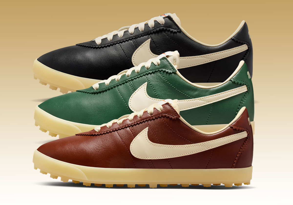 As you might guess, the pack draws its name from a consistent use of “Muslin” throughout. The off-white shade appears notably on the Swoosh, lining, and sole of each shoe, laying a compelling, vintage-minded foundation. Black, “Cinnamon,” and “Fir” leather uppers distinguish each colorway, complete with retro Nike branding on the tongue, heel, and insoles. The Astrograbber was originally released in 1974 as one of Nike’s first turf shoes for American football, and while still equipped with a waffle sole, its modern identity fits firmly in the lifestyle space.