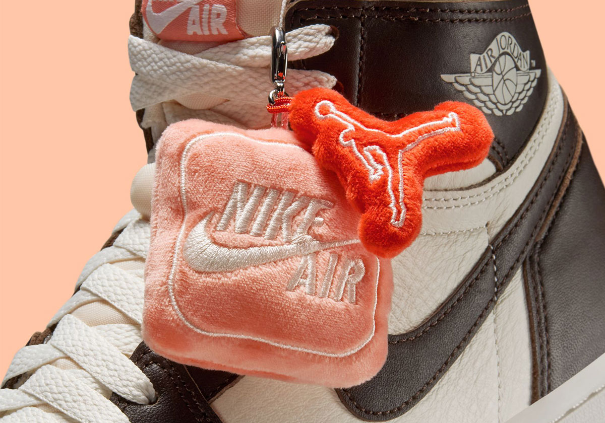 Unbeknownst at the time of our initial breakdown, the Jordan 1 “Baroque Brown” comes with a set of plush hangtags; a red Jumpman and “Light Madder Root” square with the Nike Air logo. The sneaker itself has a Travis Scott shoe sort of vibe to it, led by “Baroque Brown” overlays atop a “Sail” leather base. Pink “Light Madder Root” treatments on the tongue tag and insoles remind us of the Houston artist’s ubiquitous Air Jordan 1 line, if only because many Travis Jordans come with pink replacement laces.