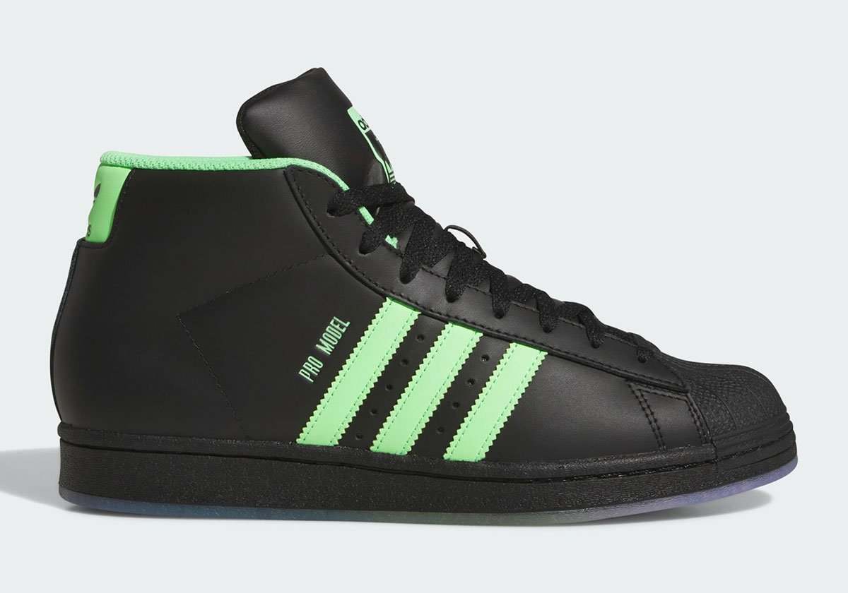 adidas has been pushing the Superstar heavily in recent months, but what about its predecessor? Despite being an adidas.com mainstay and crucial part of the brand’s hardwood legacy, the adidas Pro Model (aka the high-top Superstar) isn’t a shoe that makes headlines often. Collaborations and standout GRs seem to be the only releases that warrant sneakerheads’ attention, the latter of which includes this fresh “Core Black/Lime Burst” colorway.