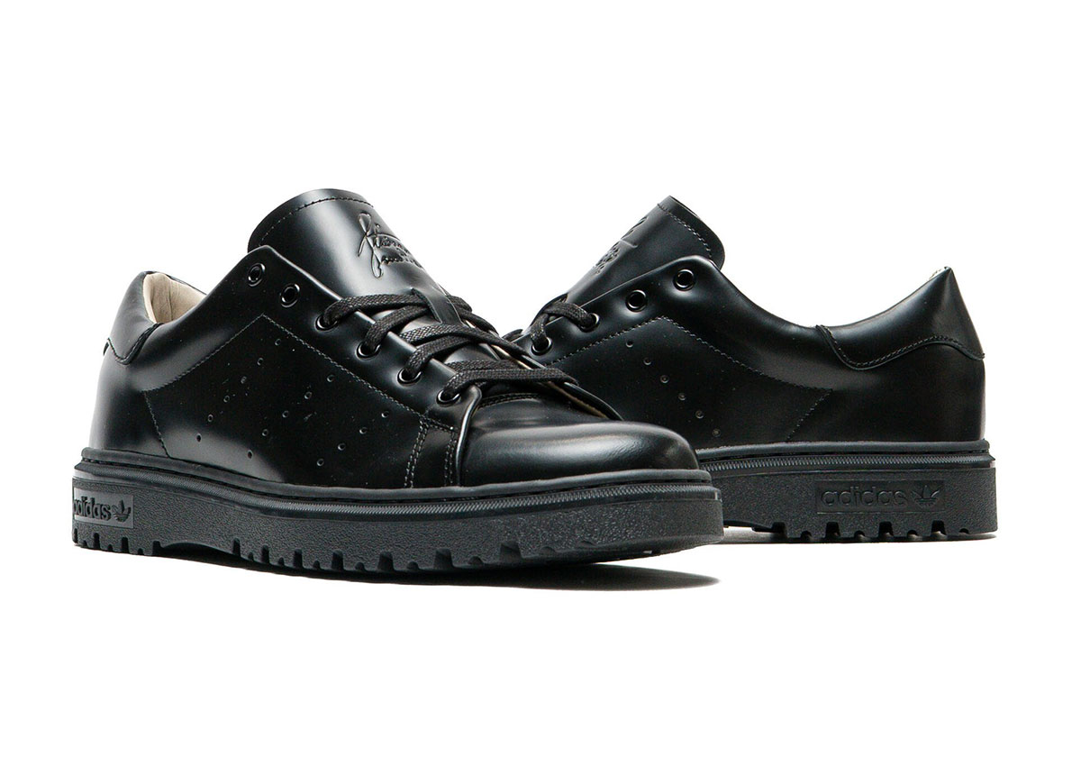 In case this is your first run-in with the Stan Smith Freizit, the classic tennis shoe pulls in a new sole unit, replete with rubber lugs for hardier applications. Obviously the base Stan Smith composition aims at the lifestyle lane, while the Freizit offshoot is officially intended for all environments wear, positioned as adidas as a fit for “city streets or natural trails.” This all black leather edition means the model can simultaneously break into a tertiary lane, tooled for a hike at 10, brunch at 1, and a wedding reception at 4. And it’s not just the glossy leather exteriors that bring that atmosphere to the table; natural leather linings demonstrate how adidas goes an extra step in creating this true “all occassions” pair.
