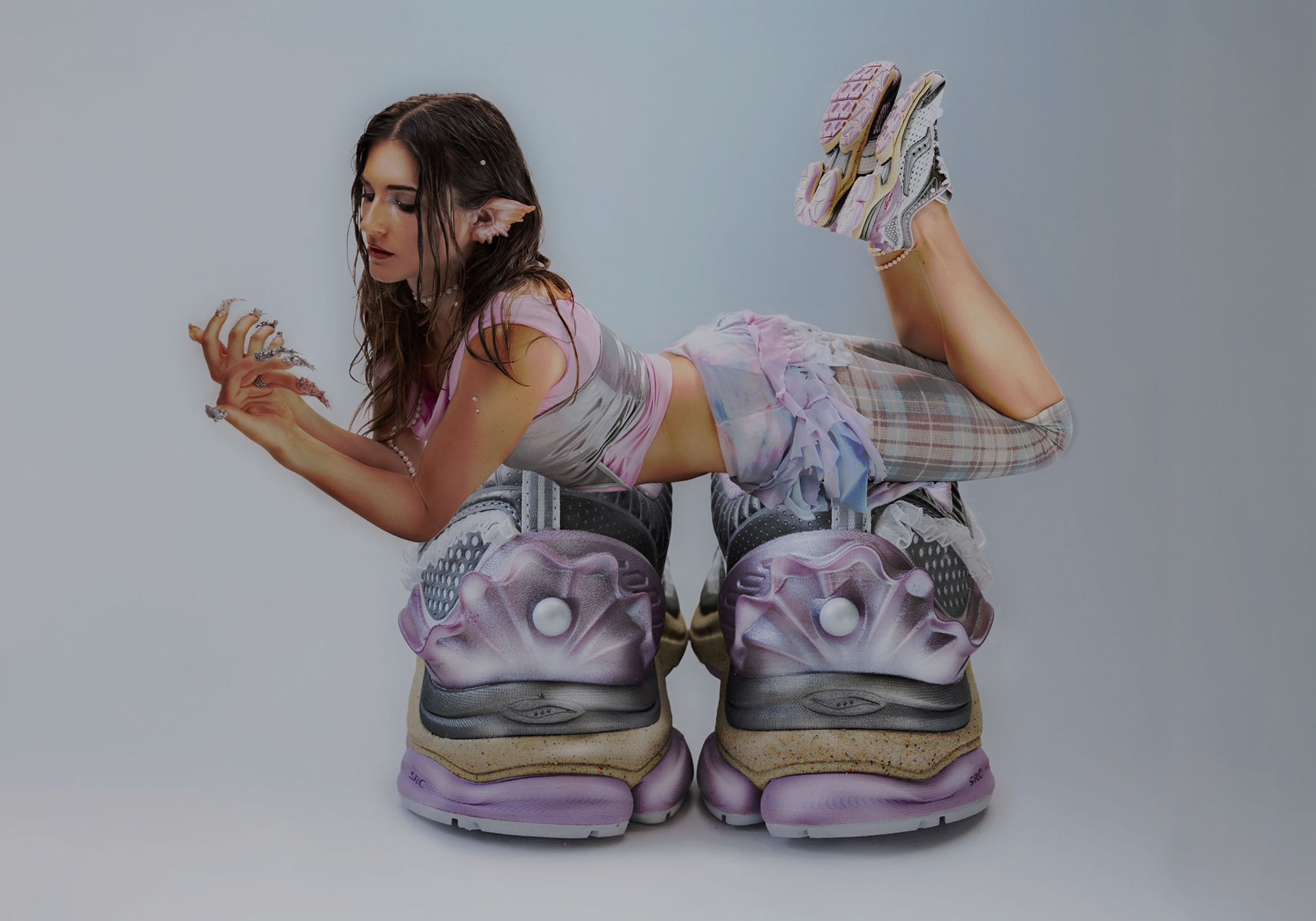If you’ve had any interest in the sneaker customization space in the past few years, you’re likely familiar with the name METAGIRL. Even if she hasn’t made it into your personal algorithm, don’t worry — the brands themselves are keenly aware of the multi-hyphenate’s signature style, utilizing frills, pearls, and everything “hyperfeminine” to transform throwback lifestyle shoes and runners.
