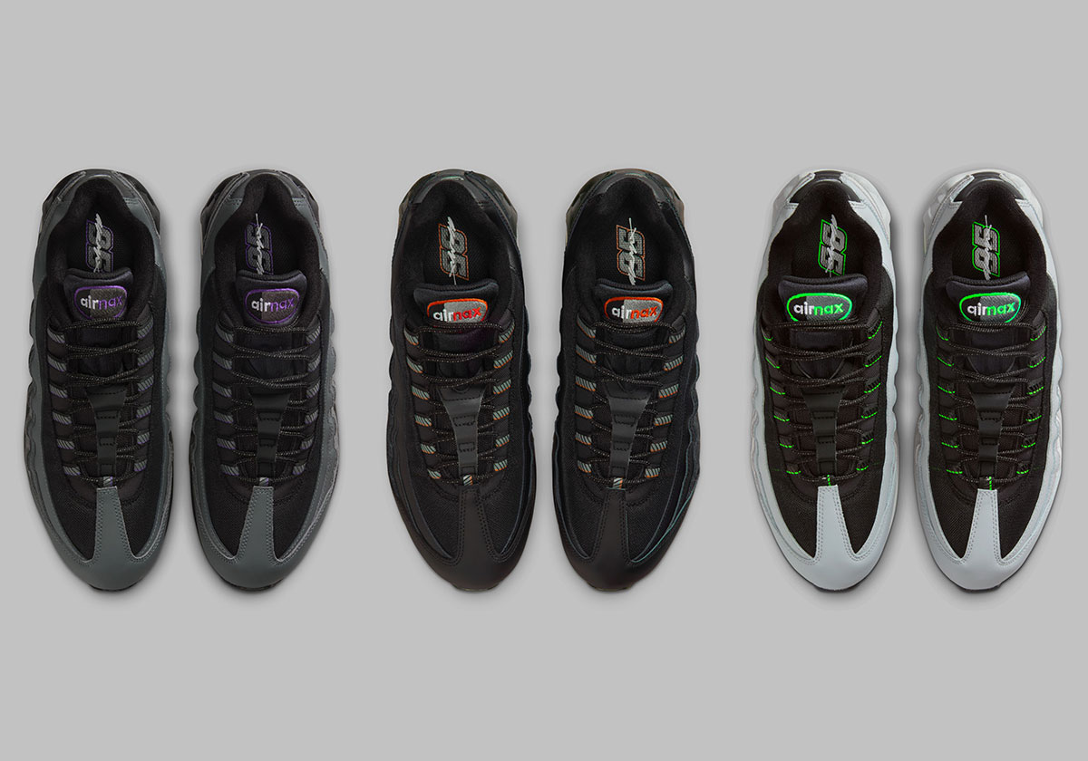 Using the Air Max 95 “Big Bubble” mold, this upcoming series features the special Racing-inspired decals on the insoles of the shoes to color-match the exteriors. Nike tunes up the silhouette in striking black/grey/purple, silver/black/green, and black/red colorways worthy of any sneaker “garage” aka rotation. The protruding lace eyelets all feature consistent diagonal striping, speaking to auto parts and the culture of upgrading and tuning these high-powered machines.