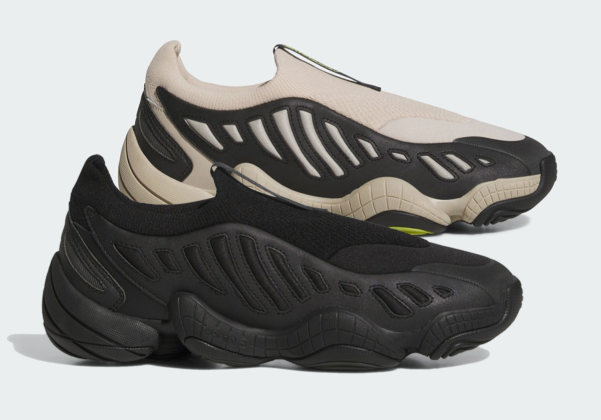 A new retro effort began populating the adidas catalog in about March of this year, and scattered collaborations have been hitting the newswire since around two years earlier. Yet as colder weather looms, it’s that shift that brings the most transformative makeover of the Feet Year Wear silhouette we’ve seen yet. The general contours of the model – including its gridded, wavy sole unit – remain in place, but there’s a ton of changes within those outlines. The most evident is changing a traditional lacing system for a fabric elastic foot entrance, holding up the “slip on” promise included in our title. Additionally, the raised TPU cages on the side now shift into flush leather, wearing cut-outs in the space between to create that same impact. Naturally, the same “Triple Black” aesthetics that have graced the parent model make an appearance here, but a more experimental beige/black/neon green is also on tap to help bring this remodel to market.