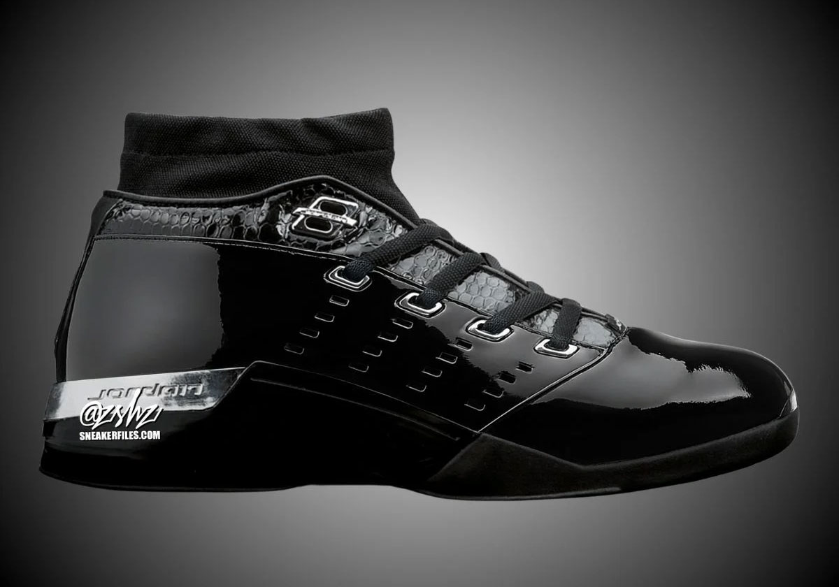 For now, they’ve shared a mock-up depiction of the shoes, which suggests a patent leather version of the original Air Jordan 17 Low “Black” (the original is pictured below). We’ll update you when firm details and photos arrive, so be sure to bookmark our Jordan Release Dates page to stay atop of all of 2026’s big drops.