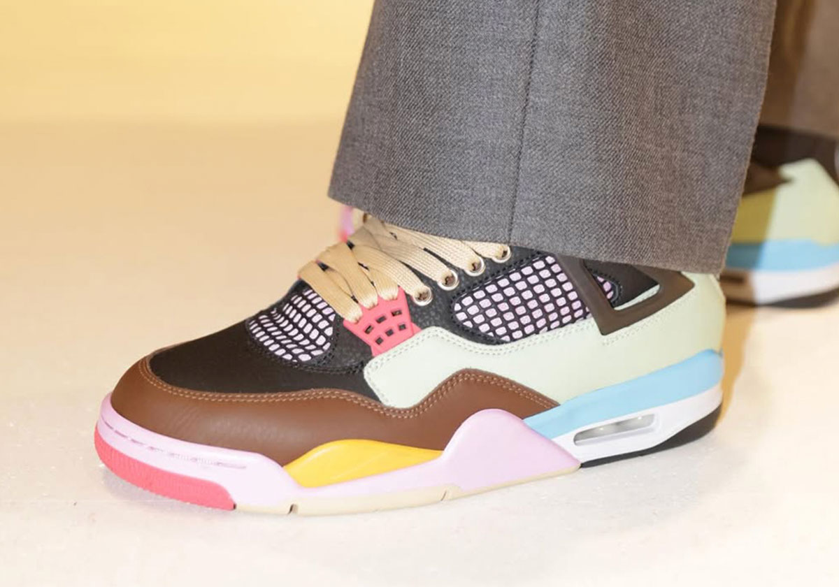 Could we now be getting a preview of what’s in store for 2026? The superstar just finished up his Hecho en Medellin, Ciudad Primavera homecoming show, a 7+ hour showcase packed with guest appearances and insane production values. For our purposes, Balvin made headlines by rocking a never-before-seen variation on the Air Jordan 4. The top half of the shoe that’s visible in these shots keeps to a simple script, utilizing the black and red that the silhouette has embraced countless times. From the mudguard down is where things get particularly interesting. Shades of lilac, aqua blue, seafoam green, tan, and brown all collide on the overlapping panels of Mike’s fourth signature, adding an off-kilter spin on the singer’s typically expressive design language previously seen on the AJ1, AJ2, and AJ3. Adding flame to the fire regarding this being an early preview of what the artist has in store, he’s previously hinted at his catalog going in sequential order, waving at yet not confirming that an Air Jordan 4 may come of his oeuvre still.