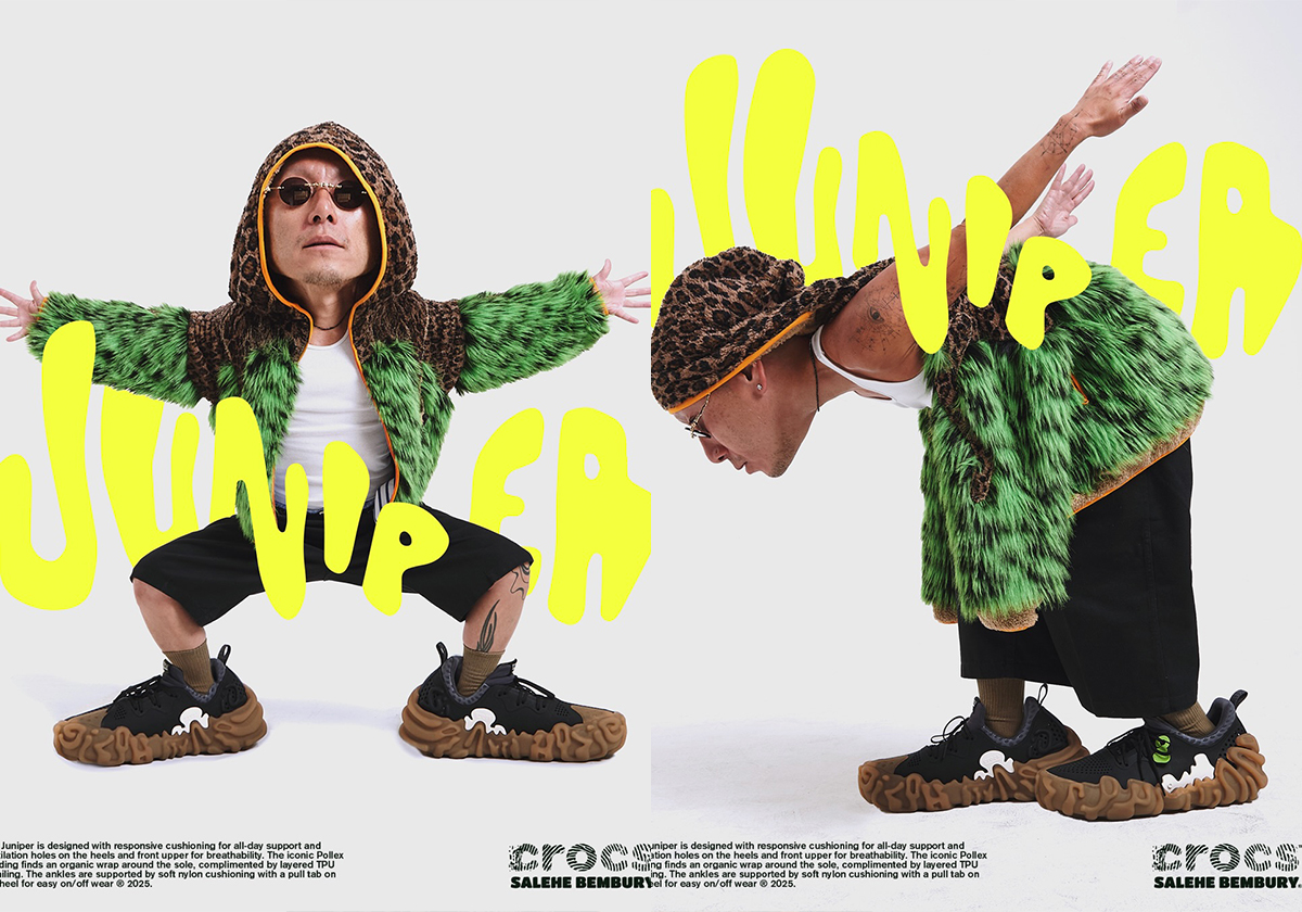 Before that Bembury-controlled venture and the PUMA Hali 1, arguably the silhouette to carry the most of his independent design language was the Crocs Juniper, one of the first earnest sneaker designs in the Colorado company’s catalog and one that proudly wore the NYC native’s trademark fingerprint hardware underfoot. Continuing a steady drumbeat of novel colorways that’ve already paced the newswire throughout 2025 is a “Boba” overhaul, surprisingly shifting from the unmissable vibrancy associated with Salehe into more digestible fare. The wrap-around sole unit approaches the aesthetics of a gum sole, while black synthetics dominate the upper, only interrupted by contrast TPU panels in white and a dark grey mesh collar.
