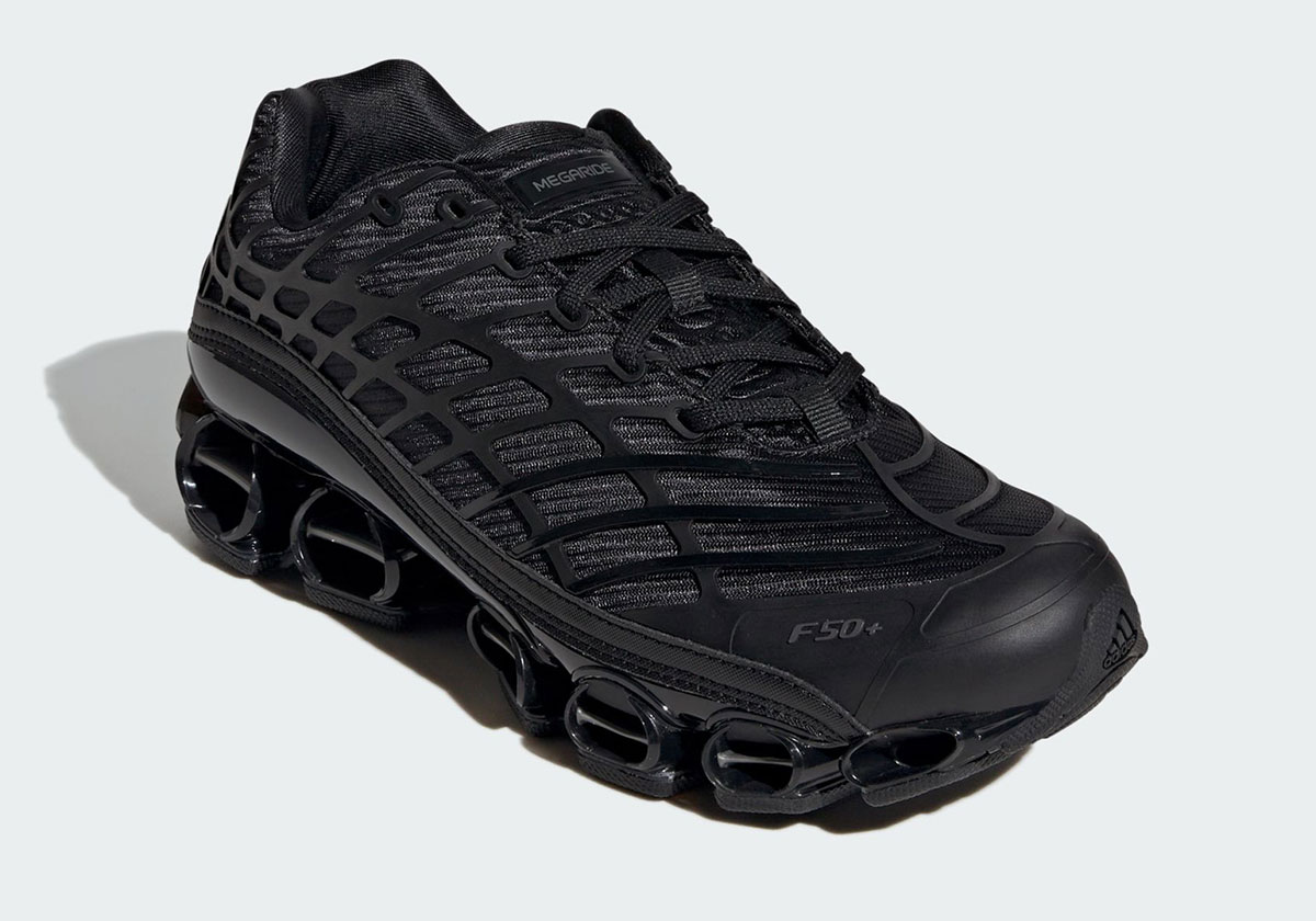 Megaride is to adidas what Shox is to Nike, and much like that latter pairing, it’s become clear that Megaride footwear will be a key pillar of adidas’ retro-tech lineup moving forward. The 2000s running franchise enjoyed a proper rebirth in 2025, defined by collaborations and a wide range of styles both old and new, particularly those informed by adidas’ deep soccer archive. That momentum carries into 2026 with the debut of a new all-black adidas Megaride F50 style, shown here via official images.